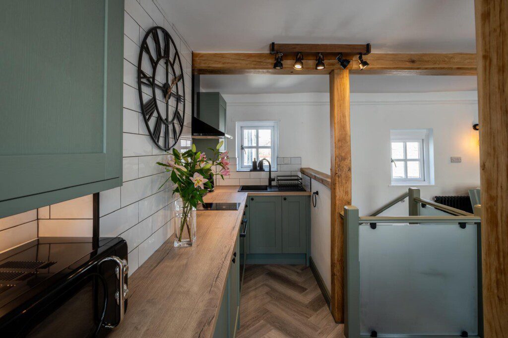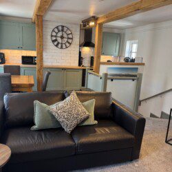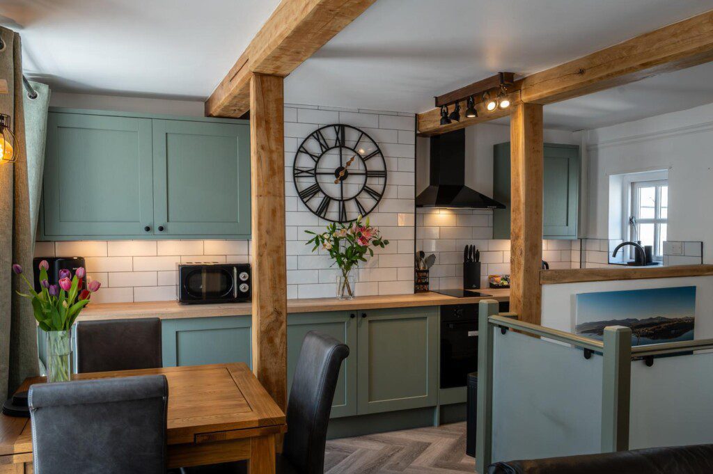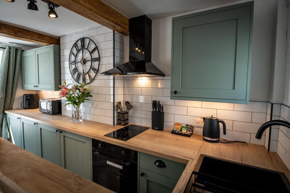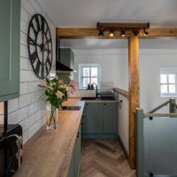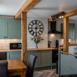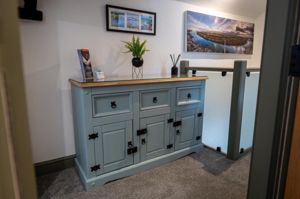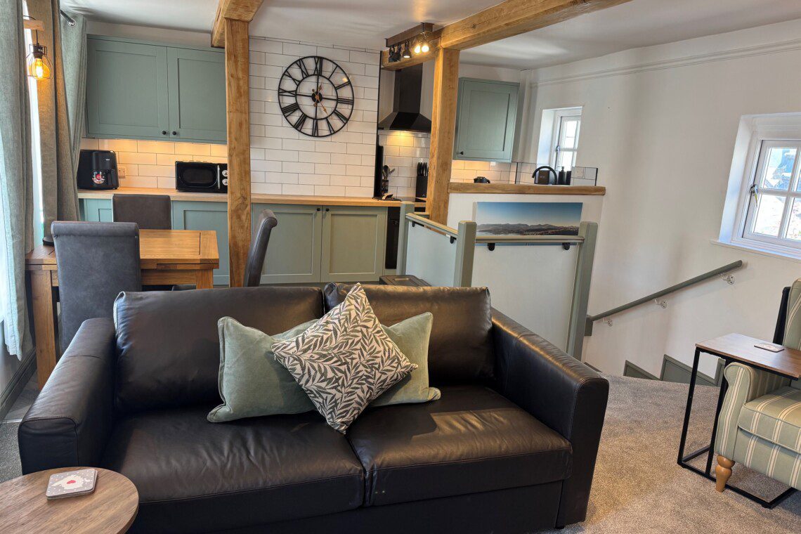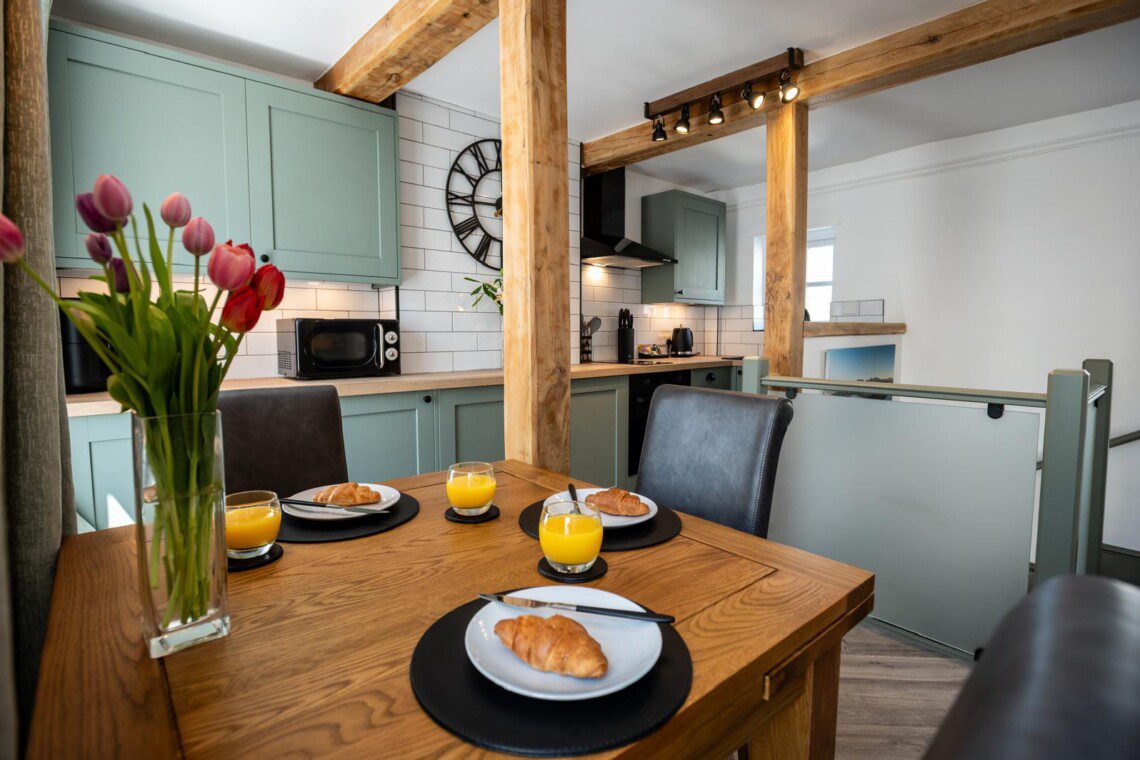 Step into an open-plan modern kitchen complete with an air fryer and a washer dryer, there’s a dining area and cosy lounge area, the perfect setting to relax after a day exploring the beautiful Isle of Anglesey.